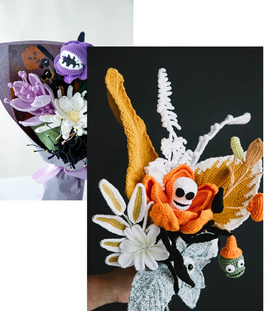 Beautiful handcrafted bouquets, ready to brighten your space or make the perfect gift | complete kits with premium yarn, patterns, and tools to create your own masterpieces.