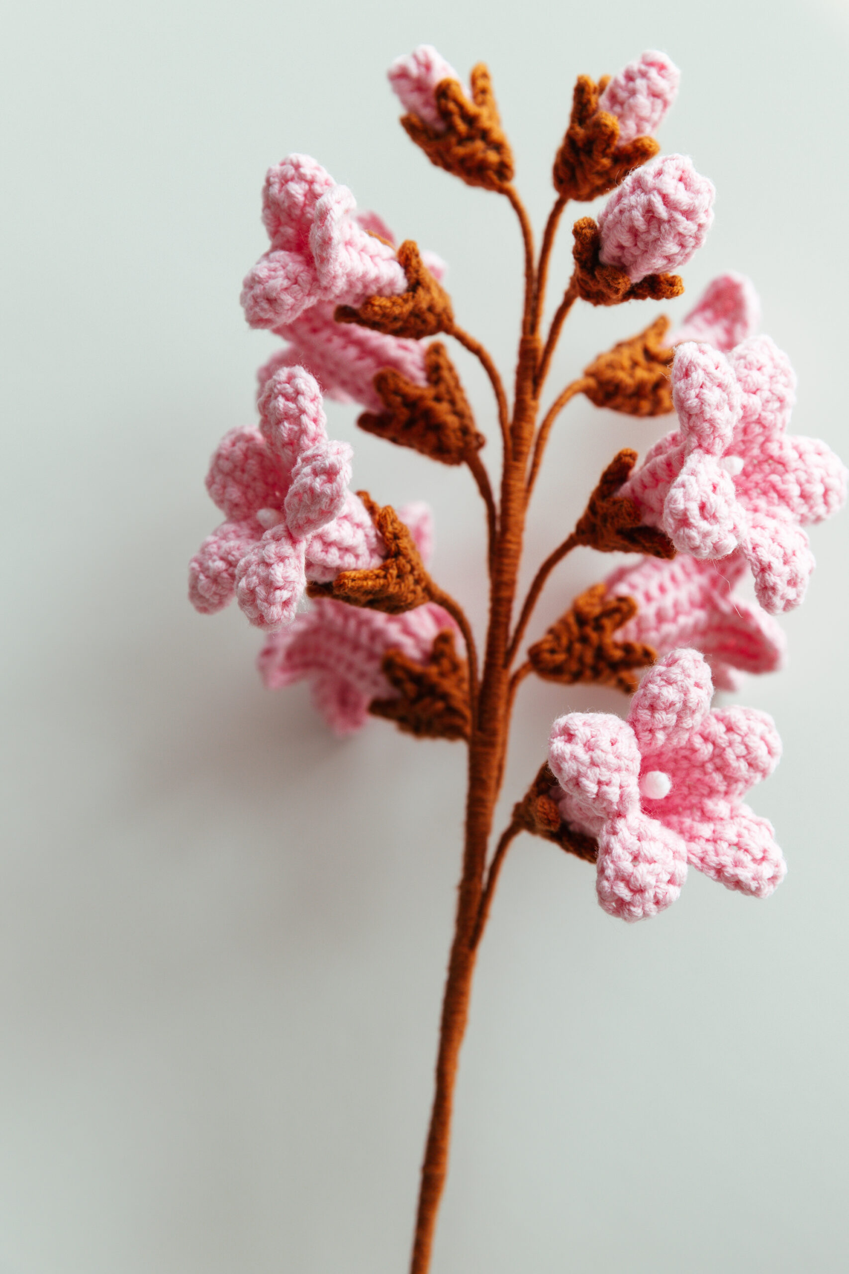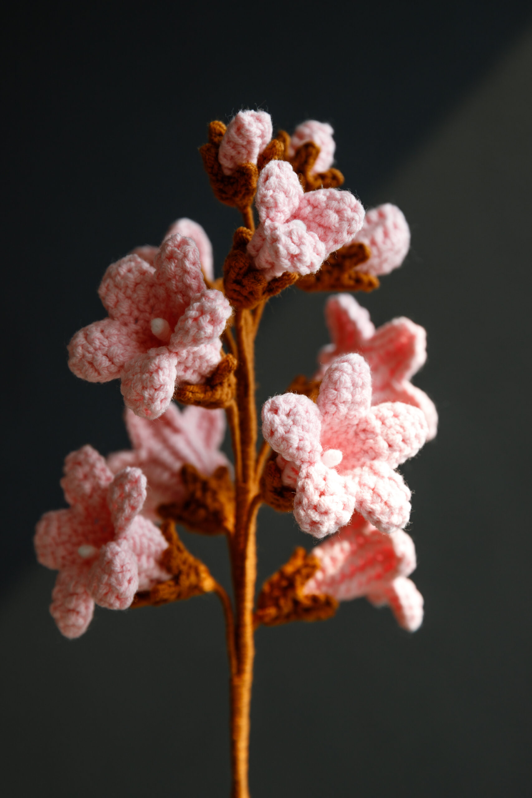 Our Crochet Paulownia Flower Kit contains cotton yarn, a crochet hook, a flower stem, and other accessories. With this kit, you can make 3 beautiful paulownia flowers.