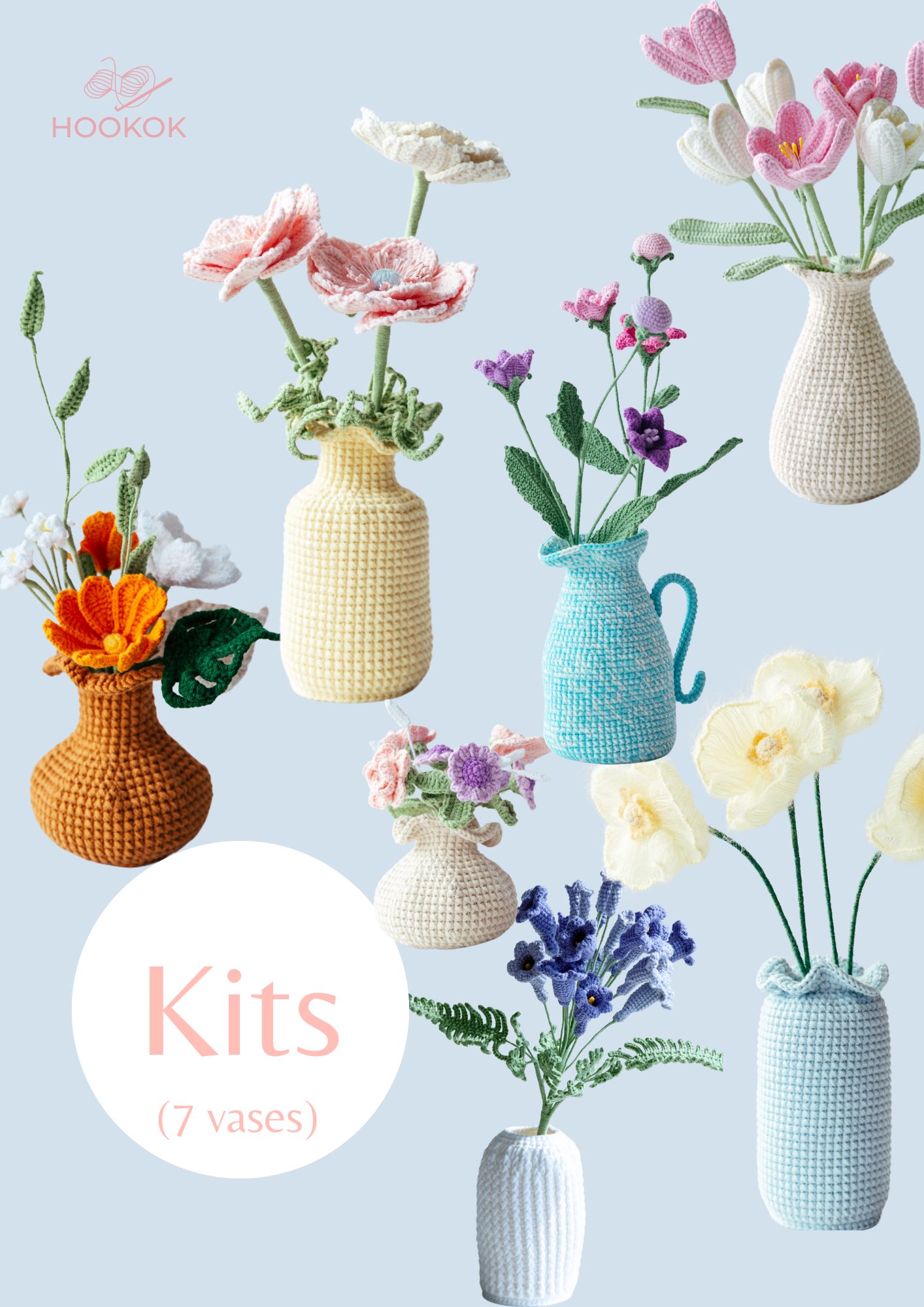 (Note: This is a crochet kit for 7 vases. The flowers in the vase are for reference only.)