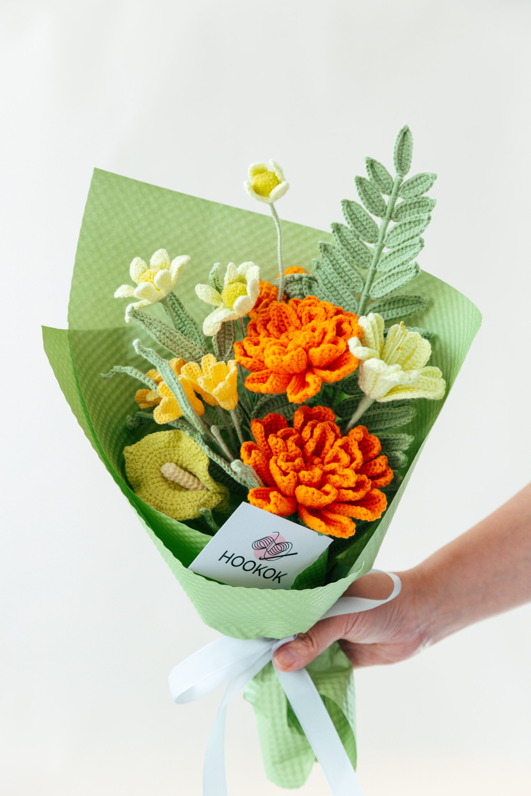 100% hand-made Crochet Orange Marigold Bouquet. If you want personalized bouquets or special colors, leave us a message or contact us for customized orders.