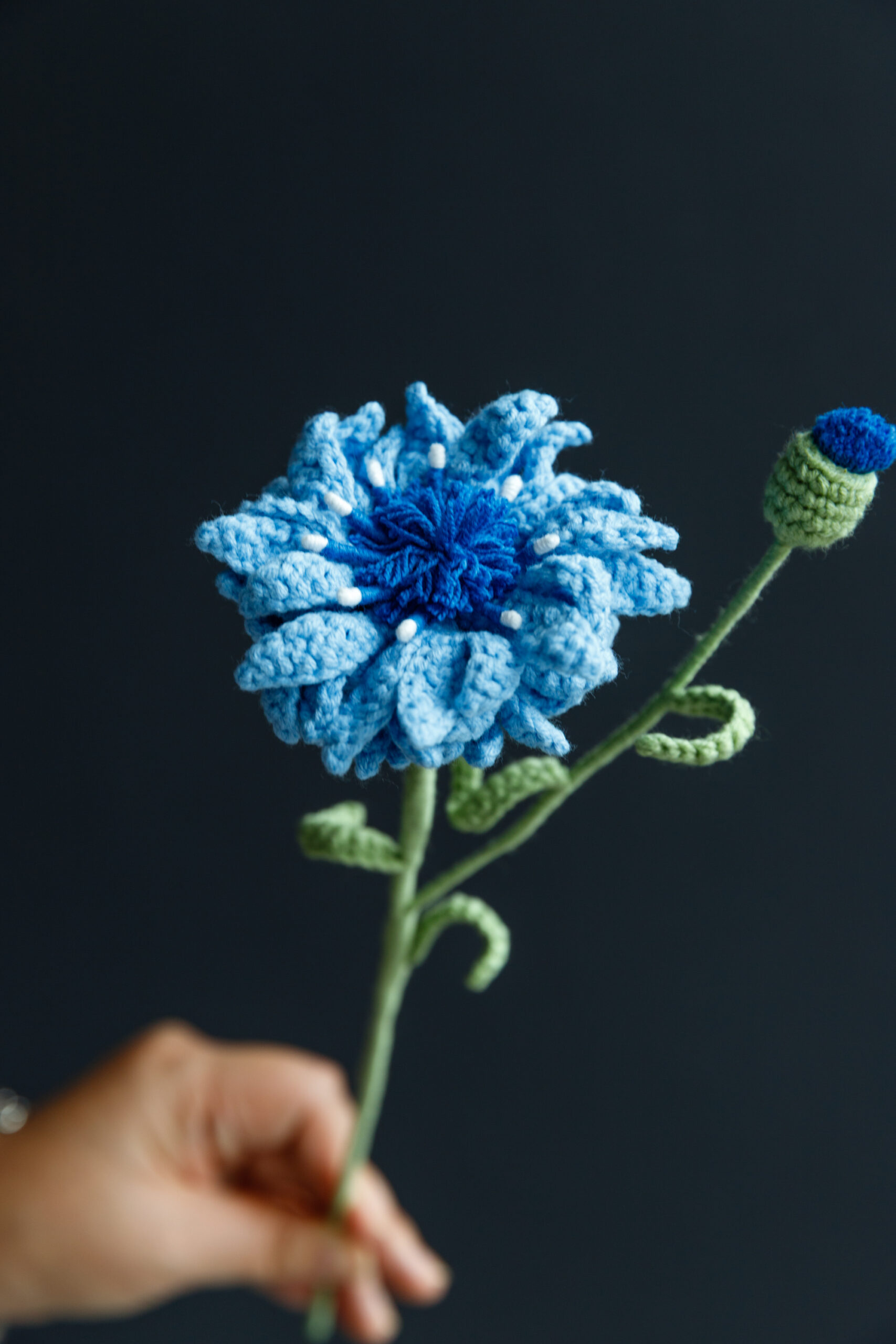 This is our PDF pattern of Crochet Cornflower, with a detailed video tutorial to guide you through the crocheting process. It’s beginner-friendly so you do not need advanced skill levels to make it. DIY crochet flower at home.