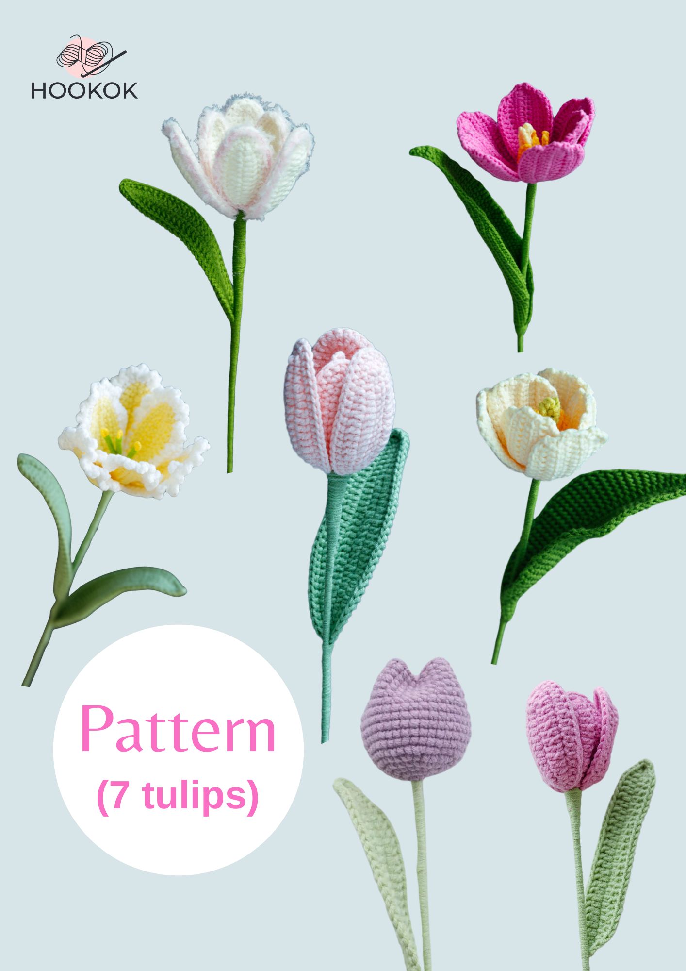 This is our collection of crochet tulip patterns, which includes 7 types of tulips, coming with detailed video tutorials to guide you through the crocheting process. You do not need advanced skill levels to make them. DIY crochet tulip flower at home.